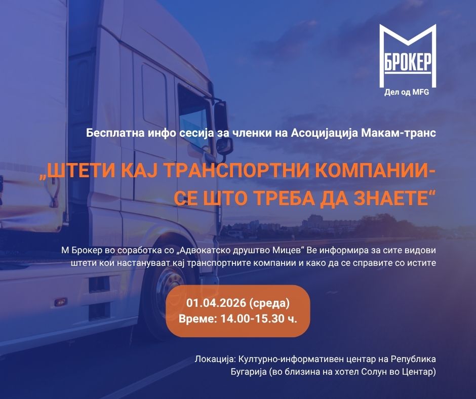 Покана за настан од нашата ВИП членка М Брокер „Штети кај транспортните компании – се што треба да знаете“