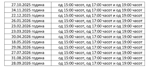 „Согласно Закон за превоз во патниот сообраќај и Закон за превоз на опасни материи во патниот и железничкиот сообраќај, Министерството за транспорт закажува датуми за полагање на: